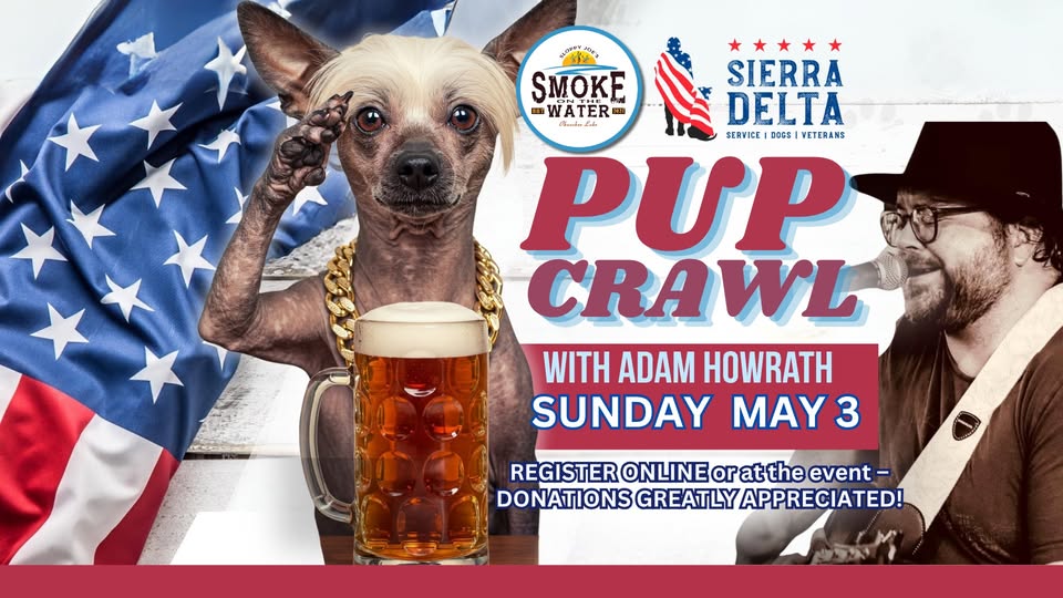 $25 donation gets you a Sierra Delta T-Shirt & Bandana, adult drinks along the route, and pup treats.
